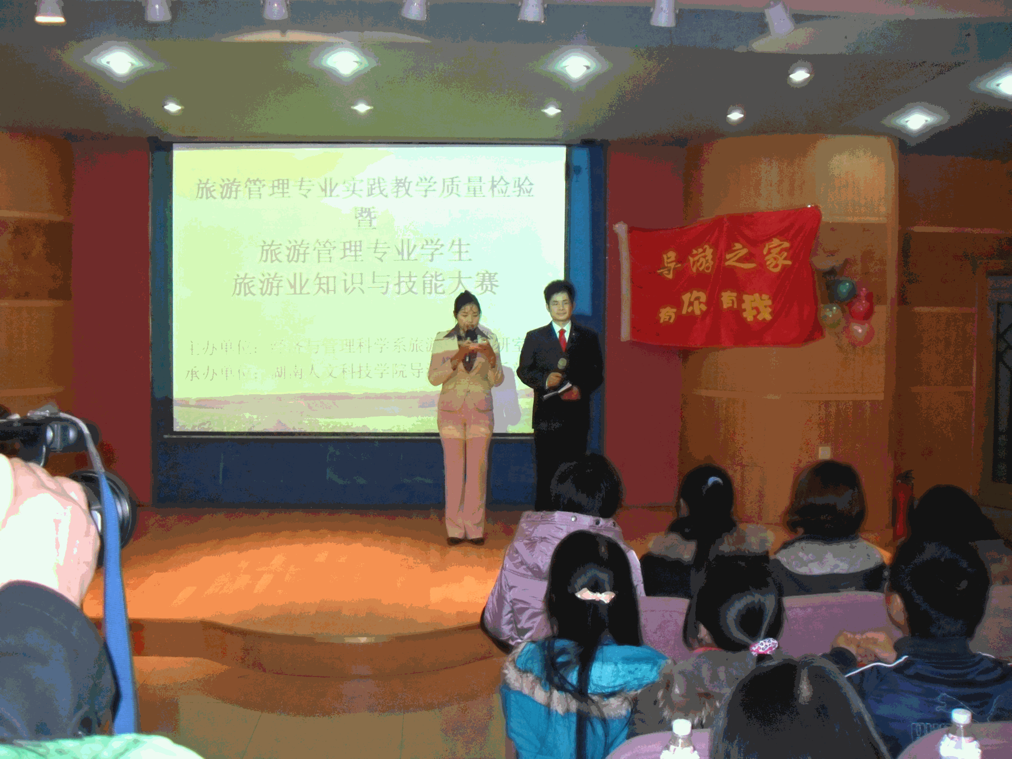 2009年12月17日晚,我系旅游管理专业在学校多媒体报告厅举办了“旅游管理教研室实践教学质量检验暨旅游业知识与技能大赛”。院长助理蒋建初教授亲临赛场指导活动的开展。