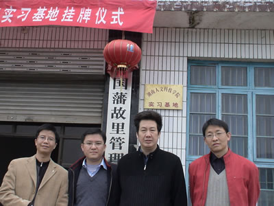 2008年3月30日,我院经管系主任高玉泉教授和相关专业教师率05级旅游管理毕业班学生前往全国重点文物保护单位曾国藩故里旅游景区与双峰县曾国藩故里文化旅游开发有限公司、曾国藩故里管理处举行隆重的实习基地挂牌仪式。曾国藩故里旅游景区正式成为ballbet贝博bb艾弗森经济管理系又一揭牌实习基地,进一步推进了我系“校企结合”的发展进程。基地挂牌仪式由管理处旅游开发部朱风顺部长主持,经济与管理科学系主任高玉泉、旅游管理教研室主任刘辛田、实践教研室主任唐赟,双峰县人民政府副县长兼双峰县曾国藩故里文化旅游开发有限公司董事长唐剑辉出席了实习基地挂牌仪式。