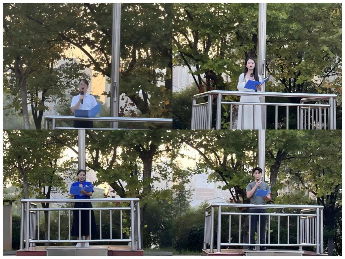 典礼在庄严的国歌声中拉开帷幕。升旗仪式后,老生代表2024级财务管理三班万欣荣以“谋近以致远,养根而俟实”的校训为指引,结合自身经历分享了大学学习与生活的经验。专升本新生代表、2023级旅游管理三班的邓慧结合自身丰富的成长经历,号召大家共同“把接下来的路走扎实”。新生代表2025级财务管理二班李奕萱分享了对未来的人生规划,期待大家共同明确目标、努力成长。教师代表王晶晶则鼓励新生勇破风浪、砥砺前行,在人文校园开创属于自己的热血篇章。