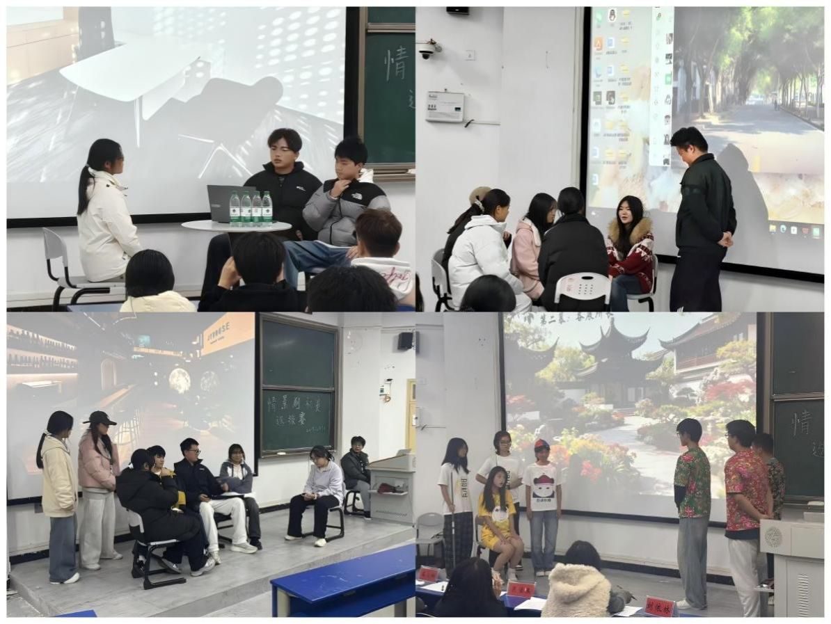 比赛现场气氛热烈,各参赛队伍围绕不同主题展开生动演绎。选手们通过自然贴合的台词、真挚细腻的情感,将《拾光里的暖与醒》《喧哗与倾听》等剧目的精神内涵传递给观众,台下不时响起阵阵掌声。评委们从剧本创意、表演技巧、舞台效果等多维度进行评分,并给出专业点评与实用建议,帮助同学们进一步提升。经过激烈角逐,25级电商一班作品《面试》荣获一等奖;25级电商二班作品《拾光里的暖与醒》和《喧哗与倾听》获二等奖;三等奖由25级财务二班作品《秀女“入编”传》、25级旅管一班作品《微光不弱》及25级数经二班作品《追光者》获得。