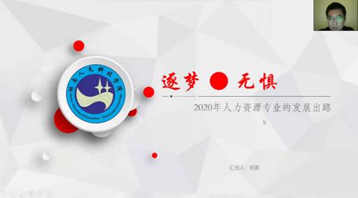 会上,杨雷学长首先介绍了自己的工作履历、毕业后职业生涯中所遇到的问题和机会;接着从目前企业现状、机会、优势及出路四个方面进行更深层次的讨论。虽然在2020年初中国社会企业生存调研报告中,有34.82%的社会企业勉强维持,12.5%的社会企业面临倒闭危机,但在政府金融、政策支持,在校期间老师以案例为主的教学,专业化培养,组织各项专业活动,传授理论知识等专业指导下,人力资源管理专业未来发展方向并不直接受当前企业现状影响,而把握好每一个机会,发挥出自身优势,培养专业技能才是关键。最后告诉大家,成功路上并不拥挤,也绝非偶然,任何专业都有一条合适的发展出路,只要我们努力学习,有无畏无惧敢于挑战的精神,道路就会逐渐平坦而宽阔,越走越远!(通讯员:曾茂桂 罗灿)