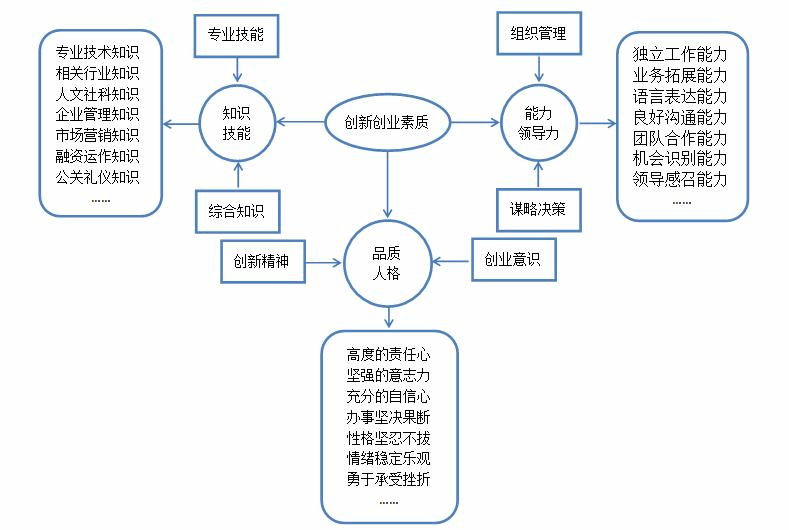开展创新创业教育方面取得的成效和经验。 近年来,中心围绕“培养高素质的应用型技术人才”的培养目标,以大学生创新创业教育为抓手,不断加强课程体系建设,传授创新创业知识;构建校企联合的创新创业实践平台,提高学生创新实践能力;构建了“两创”实践教学体系和“体验式”实践教学模式,切实提高学生的创新精神、创业意识和创新创业能力。 ⑴充分认识创新创业教育的重要性 全面贯彻落实党的十八、十九大精神和国务院办公厅《关于深化高等学校创新创业教育改革的实施意见》。商学院积极邀请专家、企业人士为全体师生作有关大学生如何创新创业的专题报告,组织召开大学生创新创业专题会议,引导广大师生转变观念,充分认识创新创业教育在人才培养中的重要地位,深刻认识到创新创业教育对深化教育教学改革,切实提高大学生创新创业意识与能力,推动地方应用型高水平大学建设具有重要的实际意义,增强改革的责任感和紧迫感。通过更新观念,使创新创业教育成为学校办学、教师教学、学生求学的理性认知与行动自觉。 ⑵构建了大学生创新创业的素质模型和创新创业教育课程体系 中心通过调研和应用型人才培养经验,构建了大学生创新创业的素质模型,如图2所示。该模型表明大学生创新创业教育主要涉及创新创业品质和人格、创新创业知识和技能、创新创业能力和领导力三个方面的培养,其中创新创业品质和人格主要是指个人是否具有创新精神和创业意识,创新创业知识和技能主要是指创新创业所需的专业技能和综合知识,创新创业能力和领导力主要是指创新创业过程中的组织管理能力和谋略决策能力。