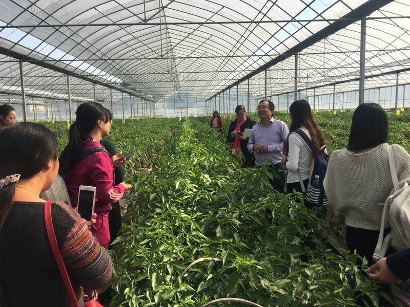 在涟源市桥头河蔬菜基地,基地负责人详细介绍了桥头河蔬菜基地的经营发展情况,并带领大家参观了整个蔬菜基地。在参观过程中,农区主干课程《农业概论》的任课教师周丽华指出,实践教学的目的是全面培养学生发现问题、提出问题、解决问题的能力,她要求学生要正确认识农业领域发展的巨大空间,鼓励同学们做一个“懂农业、爱农村、爱农民”的学生,毕业后积极投身于我国农业现代化建设。