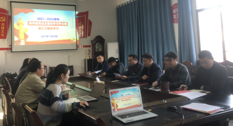 会上,院长刘辛田领学了《中国共产党第十九届中央委员会第六次全体会议公报》。副书记胡益龙领学了《中国共产党建设一百年》部分章节。副院长刘加林领学了《湖南省深化新时代教育评价改革实施一百年》。谷小科领学了《新时代学校思想政治理论课改革创新实施方案》。韦灵伟、郑清华、刘诗海、黄鹍鹏、刘爱华则分别领读《中国共产党简史》第二章至第六章的内容。