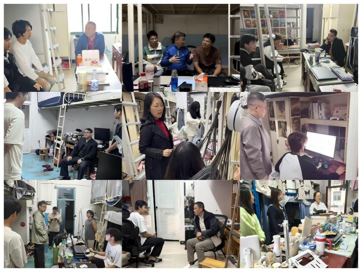 “课程节奏适应吗?”“生活上有没有需要学校协调的地方?”每走进一间宿舍,老师们便与新生围坐畅谈,从课堂学习的困惑、专业方向的迷茫,到宿舍生活的细节、未来发展的期许,话题徐徐展开。面对同学们对大学生活的迷茫,老师们结合自身经验耐心解答,用生动案例引导新生锚定目标,科学规划大学四年的成长路径。