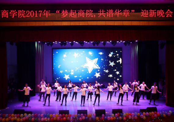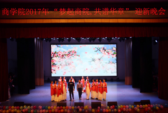 12月28日晚,商学院在逸夫楼音乐厅举行了“梦起商院•共谱华章”迎新晚会。商学院全体领导、老师、团学干部和17级新生参加了晚会。学校学生会和各学院学生会部分干部应邀参加了晚会。