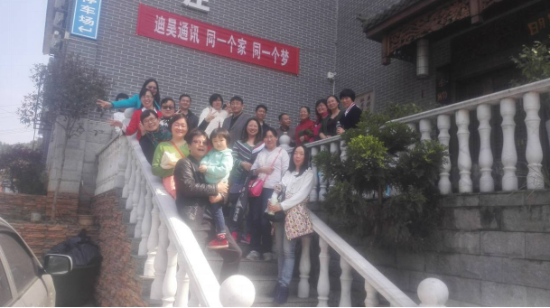 女会员们与部分男会员在明慧山庄前合影