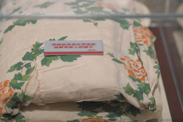 这时,一位女红军拿来剪刀,剪下半条被子,塞给徐解秀,并对她说:“等革命成功以后,我们一定会来看你们,到时候一定要送你一条完整的新棉被。”