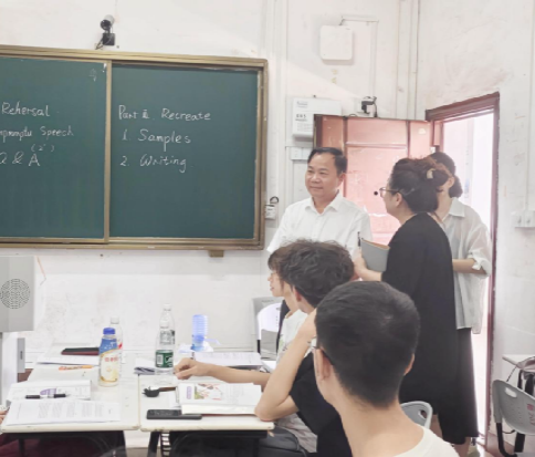 会议结束后,胡立民随即走访慰问了正在暑期积极备战学科竞赛的师生们,热情地与师生们交流,了解他们备赛情况,高度肯定大家不畏酷暑、刻苦钻研的精神,并勉励全体备赛人员保持昂扬斗志,全力以赴冲刺佳绩,为学校争光添彩。