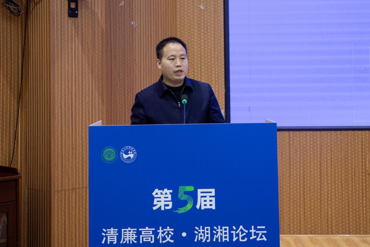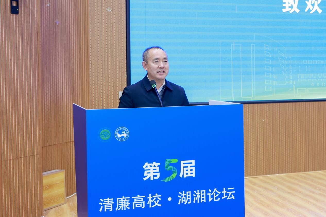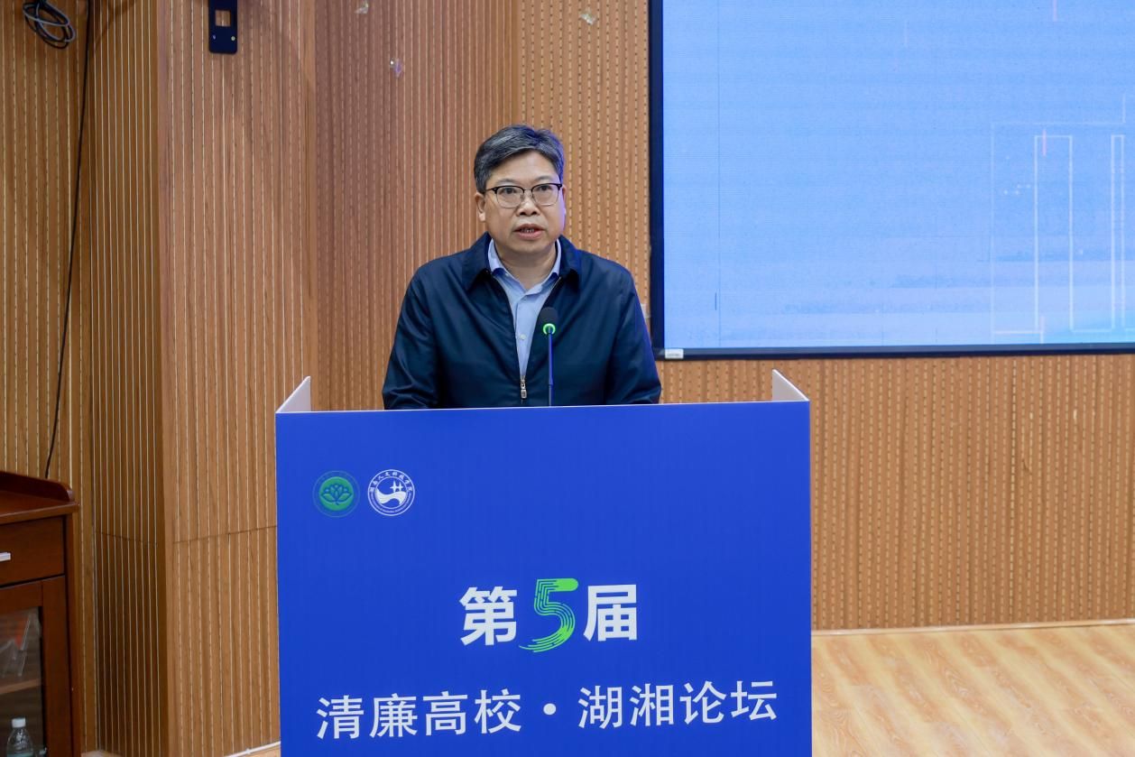刘铁峰致辞。他代表学校向与会领导和嘉宾表示热烈欢迎与诚挚感谢。他简要介绍了学校的发展情况和清廉建设实践。他表示,本次论坛对推动我省清廉高校建设向纵深发展意义重大,期待通过论坛凝聚智慧,为清廉高校建设和教育强省营造更加风清气正的政治生态和育人环境。