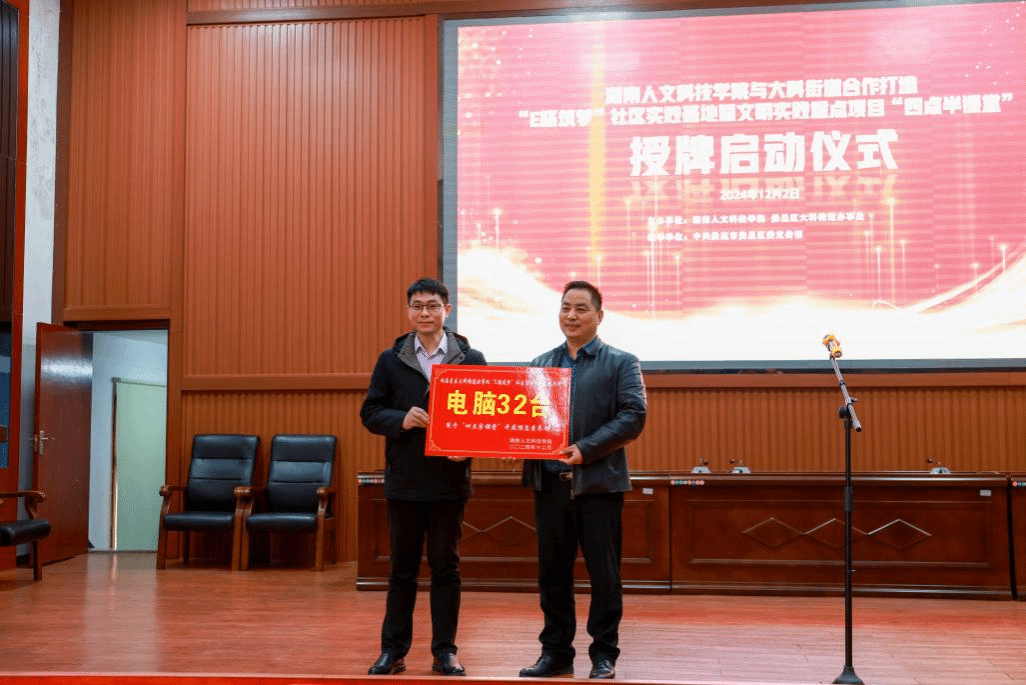 随后,大科街道党工委书记李华与ballbet贝博bb艾弗森信息学院党总支书记刘凤龙共同为“E路筑梦”社区实践服务基地揭牌。在仪式上,ballbet贝博bb艾弗森党委委员、副校长谭峰亮代表ballbet贝博bb艾弗森为“E路筑梦”社区实践服务基地捐赠电脑32台,以支持社区信息化建设和“四点半课堂”信息素养课程的教学活动。