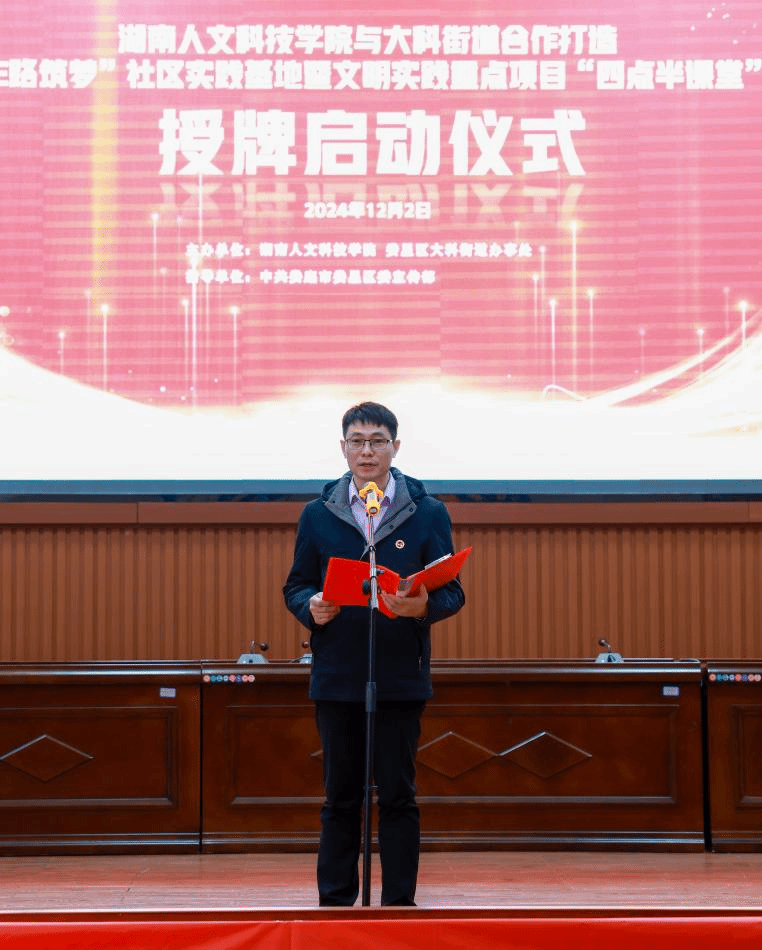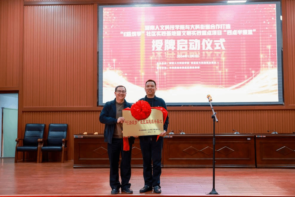 12月2日,ballbet贝博bb艾弗森与大科街道合作打造的“E路筑梦”社区实践基地暨文明实践重点项目“四点半课堂”开班启动授牌仪式在大科街道礼堂隆重举行。ballbet贝博bb艾弗森党委委员、副校长谭峰亮,娄星区委常委、宣传部长曾海军等领导出席授牌仪式。