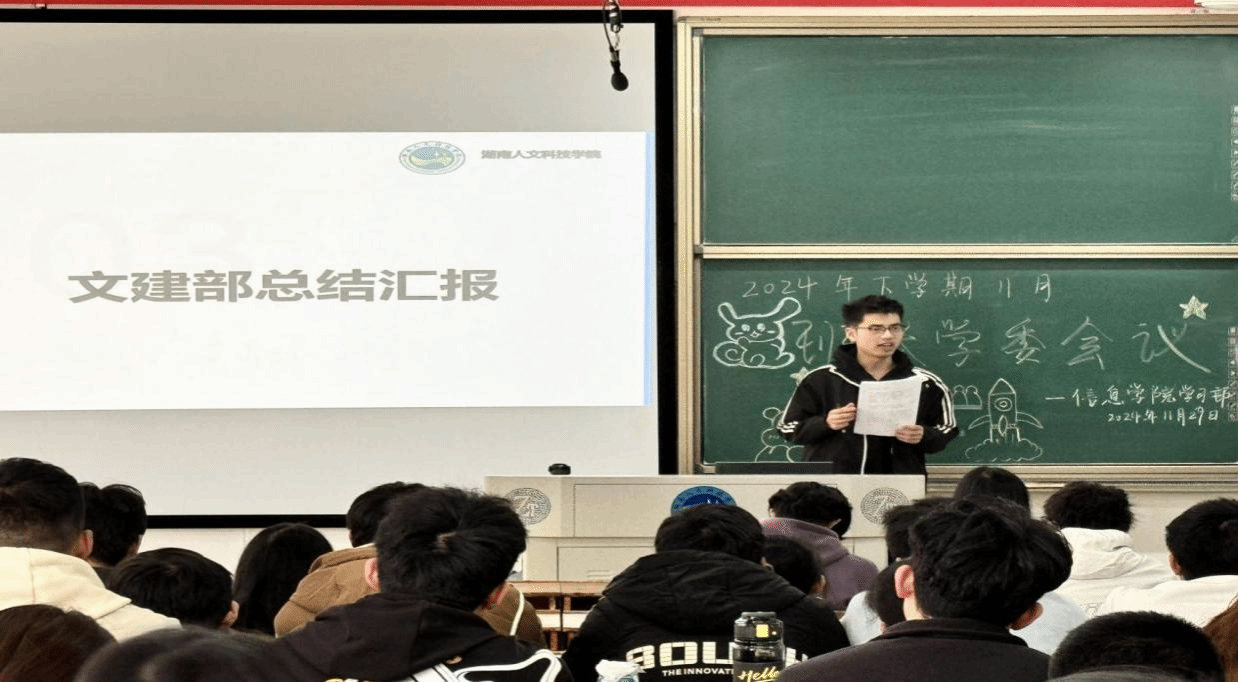 为进一步做好学院学风建设工作,信息学院于2024年11月29日中午12点40分于百全楼103教室召开了学风建设大会,主要针对十一月发现的问题进行了深入剖析。信息学院党总支副书记朱舒腊老师、辅导员、团学会部长代表及22~24级班长学委。