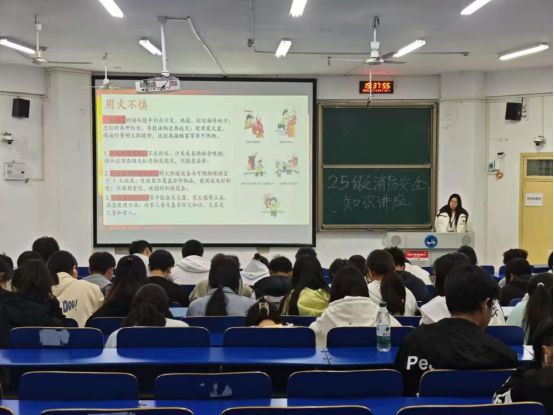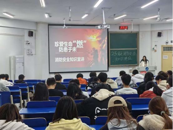 本次活动内容全面、重点突出。宣讲部深入信息学院,系统解析火灾分类与特性,结合校园实际,详细讲解了电气火灾的预防要点:禁止私拉电线、避免多个大功率电器共用插排、定期检查线路老化问题。同时针对宿舍常见隐患,强调严禁使用热得快、电煮锅等违规电器,不得在床铺上充电,并现场演示灭火器“提拔握压”四字使用口诀。安全部组织师生参与疏散演练,指导大家学习“湿毛巾捂口鼻、低姿沿墙撤离”的逃生要领,模拟了火场中固守待援、缓降逃生等情景,让师生在实践中掌握应急技能。活动还特别指出,保持消防通道畅通、熟悉报警流程(准确说明地点、火势、被困人员)是救援的关键环节。