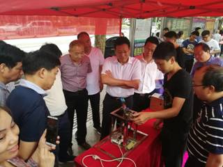 ballbet贝博bb艾弗森信息学院于5月22日上午参加了本届的科普宣传活动。在活动中,信息学院共展出了全国大学生电子设计竞赛国家一等奖的作品、二等奖的作品以及其他设计作品共10余件,参展的作品均为我院学生动手制作完成。娄底市委华学健副书记以及娄底市科技局领导莅临我们展位参观指导。华副书记观看了我们的作品演示,对我院学生的创新实践能力给予了鼓励和赞赏,希望今后制作出更多更加精良的作品,为强国富民、科技创新贡献更多的力量。