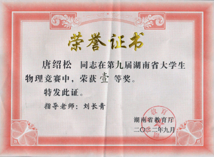指导学生参加湖南省大学生物理竞赛和力学竞赛等