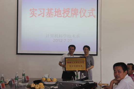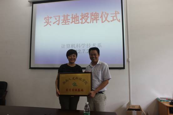 计算机系主任羊四清教授为长沙飞智益思信息科技有限公司经理罗风女士授牌
