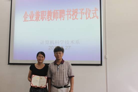 人事处处长郭育清同志为陈龙先生颁发计算机系兼职教师聘书