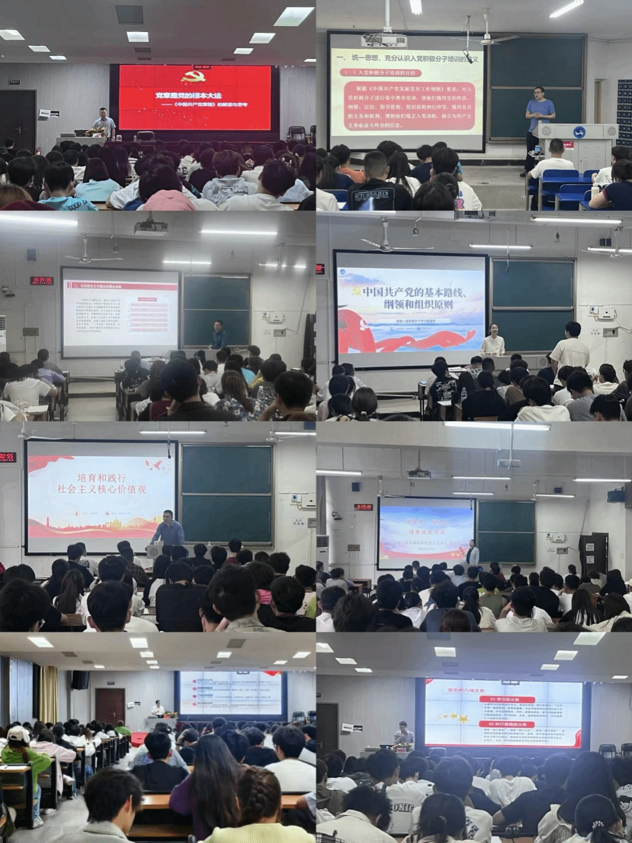 培训班课程以党章党规党纪为核心,系统解读党的纪律规范,通过剖析纪律严肃性,引导学员将纪律要求内化为思想自觉与行动准则。同时围绕党的指导思想、基本理论、基本路线及方略展开深入阐释,结合社会主义核心价值观解读,帮助学员筑牢思想根基、明晰行动纲领,在思想道德层面实现进阶提升。历史传承课程聚焦党的百年奋斗历程与优良作风,通过回溯重大历史事件与精神谱系,激发学员爱党爱国的情感共鸣。与此同时,课程设置党员权利义务专题,系统梳理权责关系,强化学员对党员角色的身份认同;结合《中央八项规定及其实施细则精神》解读,通过典型案例分析敲响作风建设警钟,推动纪律意识与担当精神深度融合。系列课程以 “理论筑基、历史铸魂、纪律塑形” 为主线,既夯实政治理论功底,又锚定实践方向,为学员扣好入党 “第一粒扣子”。