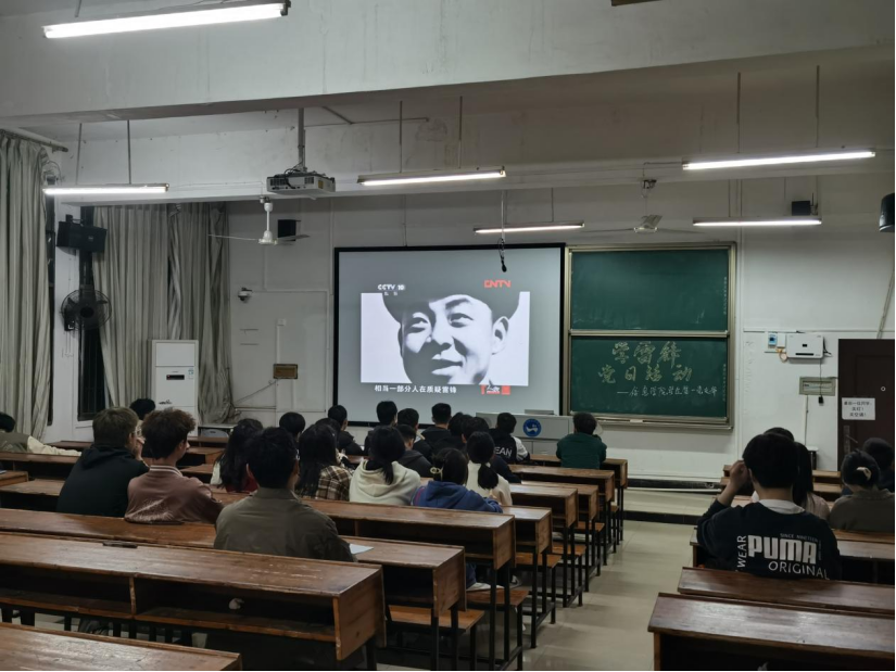 (党员与入党积极分子们正在观看《雷锋纪录片》)