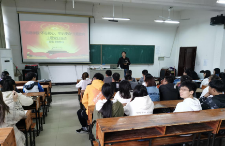 2019年11月13日中午12:30,信息学院党总支组织全院学生党员在百全楼103开展观看《榜样4》主题教育党日活动,院党总支组织委员、学生第二党支部书记颜聪玲主持活动。