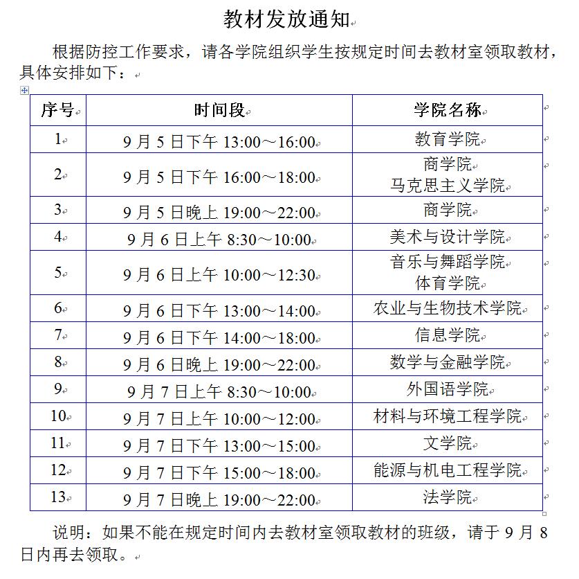2020-2021第一学期教材发放通知