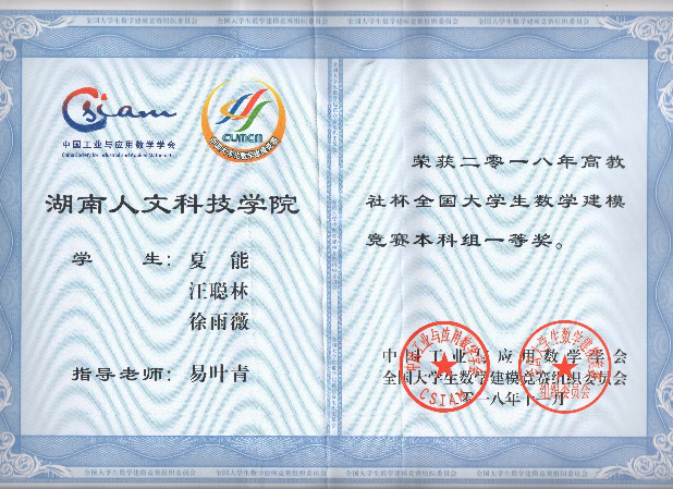 学生参加数学建模竞赛获全国一等奖和省一等奖