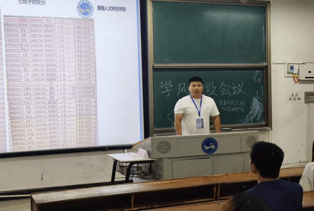 为深入推进优良学风建设,营造公平公正的考试环境,信息学院于2025年6月10日在百全楼103教室隆重召开2025年上学期学风建设大会。学院辅导员老师、团学会学习部主要干部及22-24级各班班长、学习委员参加了此次会议。