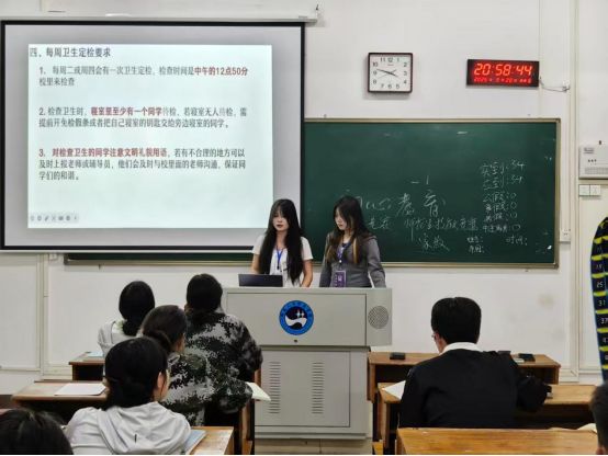 教育聚焦实效,强化安全保障:安全层面,通过真实案例解析电信诈骗、宿舍用电、消防安全、人身防护等风险点,明确应急处置流程,引导新生树立 “安全第一” 意识;学业上,详解奖助政策申请流程与 “素拓分” 规则,助力平衡学习与实践;规范上,结合违纪案例强调学术诚信、校规底线,明确宿舍安全卫生要求,强化自律习惯;思想上,讲解党团关系转接与入党启蒙,夯实政治成长基础。