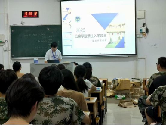 为帮助 2025 级新生快速适应大学、明确发展方向,信息学院集中开展新生入学教育,以安全教育为重点,同步覆盖奖助贷政策、综合素质测评、党团关系、纪律规范、宿舍管理等核心内容,为新生提供全方位指引。