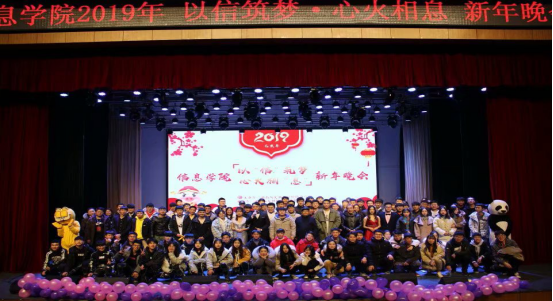 喜悦伴着泪水,成功伴着艰辛我们不知不觉的走进了2019年!2018年在成功和收获的喜悦中渐渐远去2019年的钟声敲响信息学院“以信筑梦,心火相息”新年晚会正式开始!