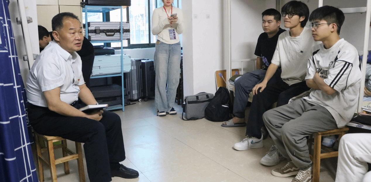 朱强与18栋504宿舍物理学专业的学生进行沟通交流。他围绕学业发展、生活管理与职业规划与学生展开深入交流。他关心学生日常生活,强调按时用餐、饮食安全及自律习惯的重要性,指出“身体健康是基础”。针对《热学》等课程学习,强调“基础要打牢”,建议学生带着问题多实践,加强时间管理并制定三年学习目标。结合湖南省中小学教师岗位饱和现状,他引导学生关注物理学科在智能制造、新能源等领域的应用潜力,提倡通过考研提升竞争力,并以清华、中科大案例激励学生“学以致用、挑战自我”。同时强调心理健康与学业并重,鼓励通过运动、交流调整状态,以“适者生存”的韧性应对挑战,在互帮互助中实现“低调做人、高调学习”的成长目标。