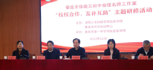 11月29日,ballbet贝博bb艾弗森信息学院物理学专业与娄底市徐晚云初中物理名师工作室联合举办“校校合作 互补互助”主题研修活动。参加此次活动的有娄底市师资培训中心书记邹兆林、名师工作室负责人朱红卫、ballbet贝博bb艾弗森信息学院副院长唐淑红,娄底市第一中学附属星星中学党支部书记、校长彭卫国、娄底市徐晚云初中物理名师工作室首席徐晚云、工作室全体成员及ballbet贝博bb艾弗森信息学院物理学专业50名大三学生。