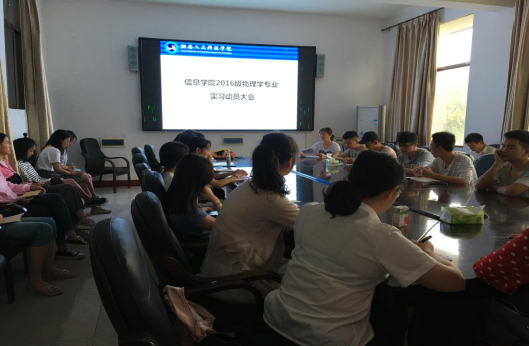 9月2日,信息学院在百全楼211会议室召开了物理学教育实习动员大会,实习带队老师唐淑红副院长、姜利群老师以及2016级物理学专业全体学生参加了本次动员大会。