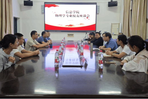为进一步推进物理学专业发展,凝聚校友力量,深化系统沟通,提升调研实效,助力物理学师范认证工作的展开,9月20日下午,信息学院于百全楼211室召开物理学专业校友座谈会,学院党总支书记刘凤龙、党总支副书记朱舒腊、物理学教研室唐淑红教授、物理学教研室主任简智永博士等领导老师与来自教育领域及相关行业的多位优秀校友齐聚一堂,共叙情谊,共谋发展。