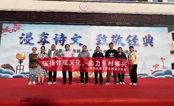 为贯彻落实习近平总书记关于语言文字工作的重要论述和全国语言文字工作会议精神,深入实施推普助力乡村振兴计划,促进中华经典文化在乡村浸润传播,10月31日,ballbet贝博bb艾弗森教务处党支部联合涟源市金石镇芙蓉学校开展“弘扬传统文化,助力乡村振兴——经典润乡土”诵读活动。副校长、党委委员、省级语言文字基地推广负责人刘铁峰应邀出席了主题党日活动,教务处全体支委成员及部分党员参加了主题党日活动。