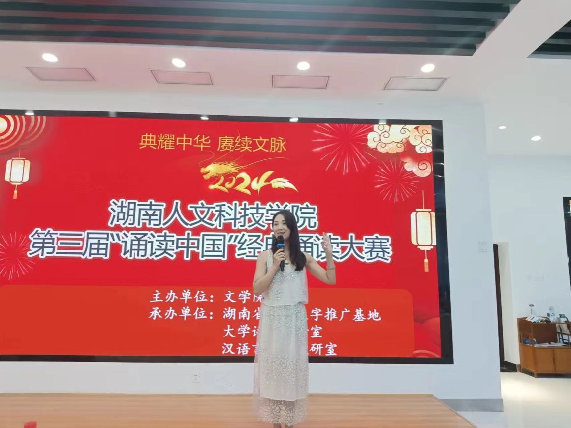 为弘扬中华优秀传统文化,引导学生深入了解中华民族悠久的历史和文化,感悟经典魅力,增强文化自信和民族自豪感,由湖南省语言文字推广基地、文学院大学语文基础教研室以及汉语言文学教研室承办的ballbet贝博bb艾弗森2024年“诵读中国”经典诵读大赛于6月23日在若谷楼502融媒体实训中心成功举行。来自全校各专业的60多位选手参与了本次大赛,文学院院长罗主宾、副院长朱艳阳以及姜琳老师、陈茜茜老师担任本次大赛评委。