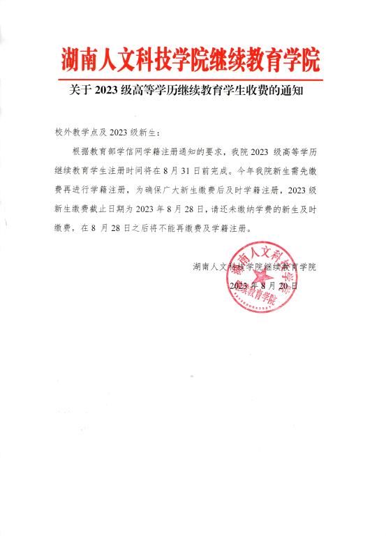 关于2023级高等学历继续教育学生收费的通知