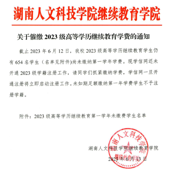 2023级高等学历继续教育第一学年未缴费学生名单 |