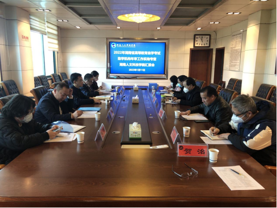 2023年1月11日上午,湖南省教育考试院自考处处长朱天视,娄底市教育考试院副院长张灿,怀化市教育考试院副院长向喆等省教育厅专家组一行莅临贝博对自学考试助学机构年审工作进行实地检查指导。副校长朱强,继续教育学院院长郑秀星,财务处副处长王卫一,纪委监察办副主任刘依归及继续教育学院自考办相关工作负责老师参会。