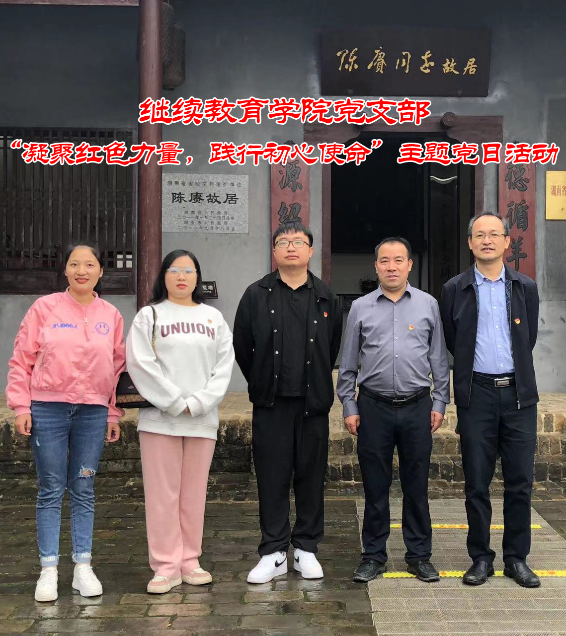 为了凝聚红色力量,加强党性思想,学习先辈艰苦奋斗精神。10月28日上午继续教育学院党支部全体党员乘车前往湘乡陈赓故居开展“凝聚红色力量,践行初心使命”主题党日活动。