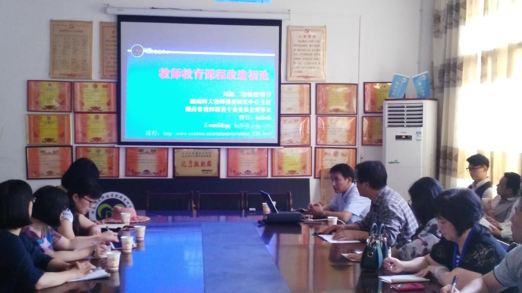 2017年5月18日下午3:00——5:50,湖南省教师教育专业委员会理事长、湖南师范大学博士导师、湘江学者刘旭教授,应邀来贝博在教育学院甘淑楼会议室做题为“教师教育课程改造初论”的学术讲座。来自教育学院、学校各职能部门、兄弟学院的领导老师30余人参加了讲座。讲座由教育学院院长刘超良教授主持。