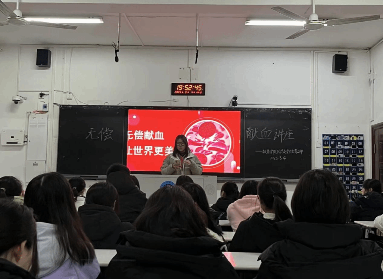讲座开始,青工部成员上台进行讲解,向同学们阐述了举办此次讲座的重要意义。希望通过此次讲座,能够让更多同学了解无偿献血,积极参与其中,为社会贡献自己的一份力量。在互动环节中,同学们积极提问,青工部成员耐心地一一解答。最后,青工部成员呼吁同学们积极参与无偿献血活动,用热血传递爱与希望。