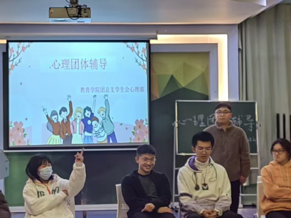 11月22日晚,教育学院在甘澍楼601开展以“敞开心扉交往,适应大学生活”为主题的心理团体辅导活动,学院熊珍明老师、心理专干梁鑫老师以及部分22级新生参与。