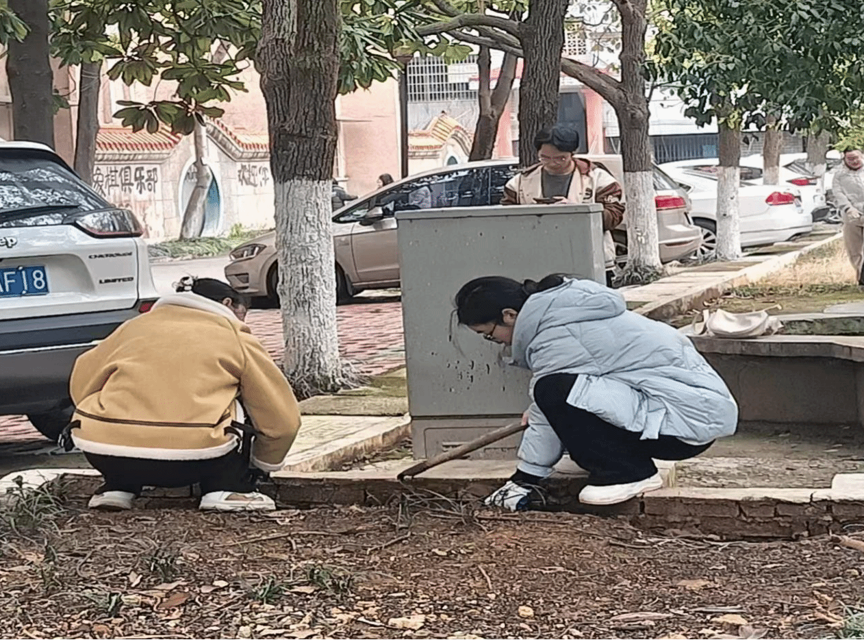 36日中午,教育学院23级全体同学在雅韵楼前开展了本学期首次“守望花田”活动。同学们领取劳动工具后自觉有序的前往事先划分的卫生区域集合并进行打扫。