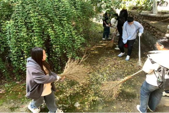 12月5日中午,教育学院23级全体同学在雅韵楼前开展第五次“守望花田”活动。同学们领取劳动工具后,有序前往事先划分的卫生区域进行了打扫。
