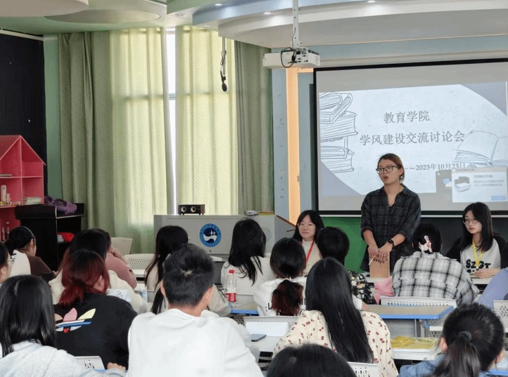 为加强学院学风建设,教育学院于10月23日中午在甘澍楼601教室开展学风建设交流会。辅导员文思婕老师、团总支学生会主席熊佳柔、学习部部长苏悦、21-23级各班班长和学习委员参加了此次会议。