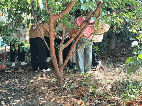 九月初秋时节,落叶遍布林荫小道与花坛,加大了清扫工作量。在闷热的午后,工作更显繁重,同学们仍然有序分工,热情高涨,认真清扫,不放过角落垃圾。从楼前台阶到园中草坪,到处都能够看到同学们辛勤投入劳动的身影,经过同学们的辛勤劳作,雅韵楼前的环境也变得更加干净舒适。最后,同学们自觉将劳动工具有序放回原处,并合影留念,本次“守望花田”活动也落下帷幕。