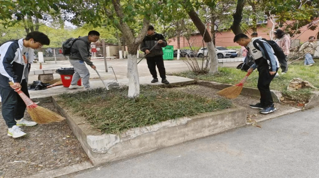 春风吹走了严寒,树叶落了一地,白色垃圾随处皆是。同学们各司其职,团结协作,有的拿着扫把清扫落叶,有的戴着手套捡白色垃圾和烟蒂,有的拿着耙子平整落叶,最后大家齐心协力把垃圾送到垃圾站进行集中处理。大家都以劳动为荣,对自己所负责的区域进行彻底的打扫,发挥着吃苦耐劳、不求回报的奉献精神。