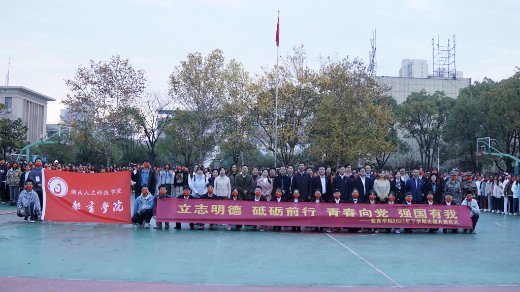 11月15日清晨,教育学院在宇光球场举行了“立志明德、砥砺前行、青春向党、强国有我”主题升旗仪式。学工处处长李玲军、副处长谢四元、曹宇,教育管理科科长宋双,学院党总支书记邹坤、院长刘超良、副院长曹俊军、副书记田密,学院全体班主任、辅导员及2019级、2020级、2021级学生参加。仪式由田密主持。